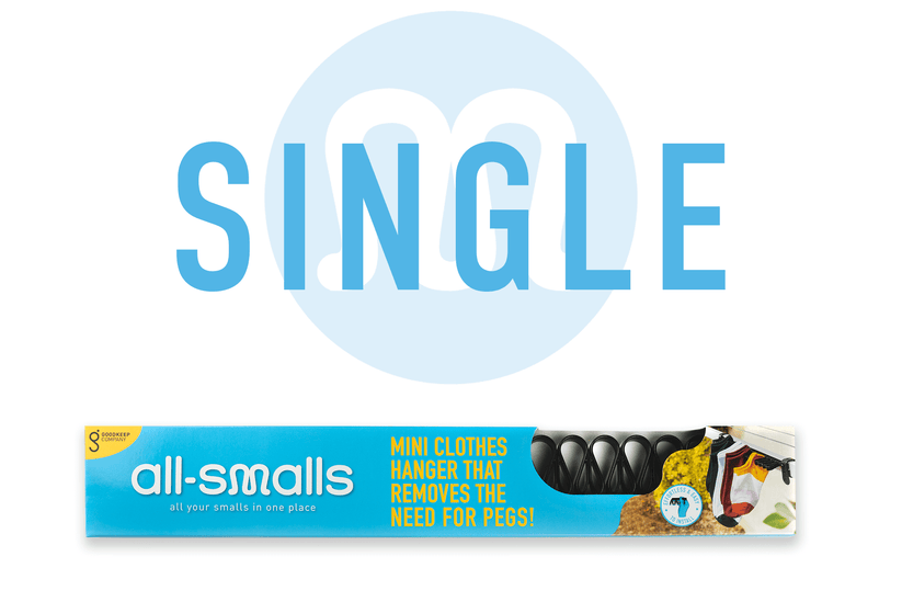 Single Pack All-smalls Mini Hanger. The All-smalls mini hanger is the perfect solution for hanging small garments. With 18 patented slots, it is easy to hang items on the hanger without the need for pegs. The hanger is also lightweight and easy to move and install, making it perfect for clothes airers, outdoor clothesline frames, caravanning and camping. In addition, the All-smalls mini hanger is suitable for both outdoors and indoors use. Save space on the clothesline with this handy hanger! |