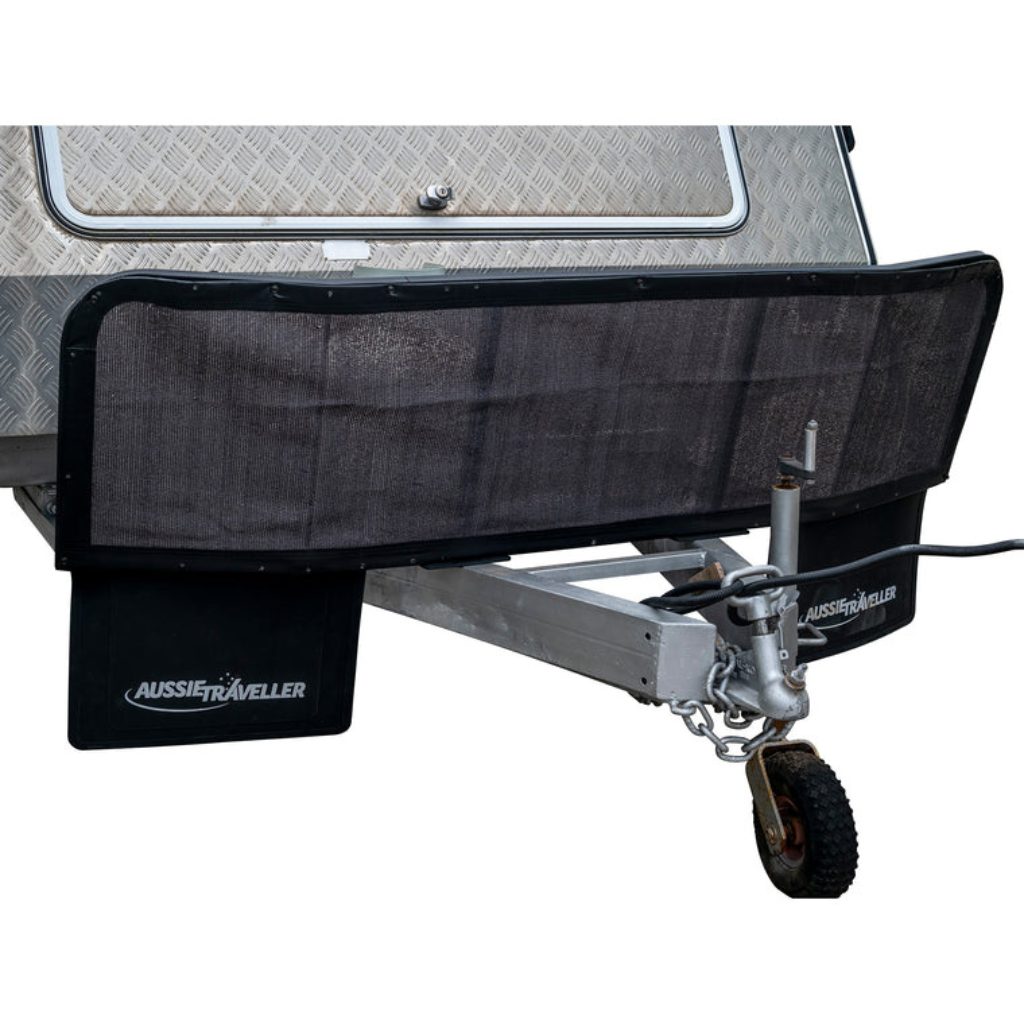 Aussie Traveller 264617001 Caravan Stone Guard. Stone guards will stop stones and other debris on the road from damaging your caravans paint work. Conveniently flat packed, these guards are easy to put together and install to the A-Frame of your Caravan. The Aussie Traveller Stone Guards can be fitted to A-Frames where the inside width, at point of attachment, is between 415mm to 750mm. The U-brackets provided can also fit onto A-frame bars with a width of 50mm x 100mm, 125mm, or 150mm high. Also available for pop-top or camper trailer. |