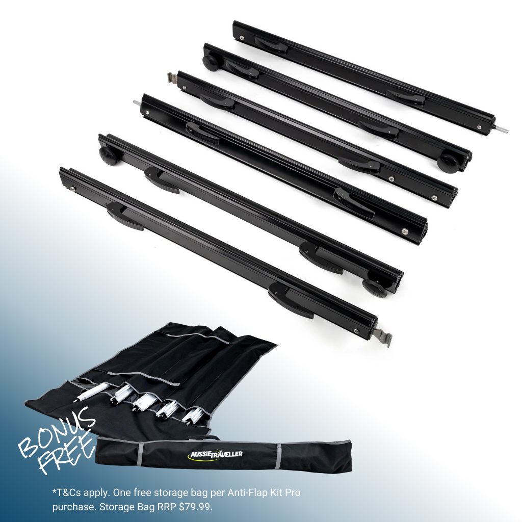 Aussie Traveller Black Anti Flap Kit PRO+. BONUS One free storage bag per Anti-Flap Kit Pro+ purchase. Aussie Traveller Anti-Flap Kit Storage Bag RRP $79.99. Limited time.