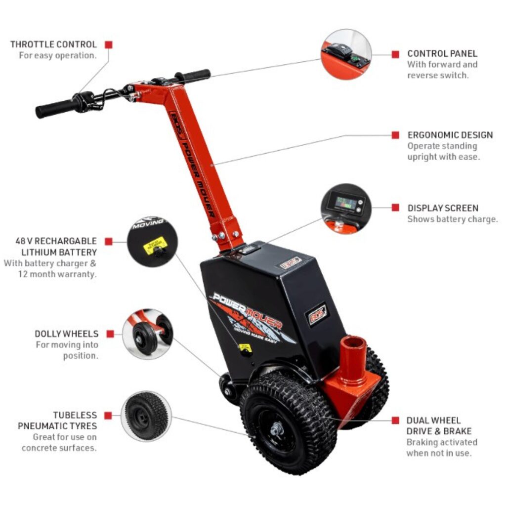 BOS 900-040 Power Mover Battery Operated. The BOS Power Mover has a 48 volt lithium battery that comes with its own charger, throttle control with a forward/backward switch and dual wheel drive and brake. The BOS Power Mover is a powerful and convenient way to move trailers and vans around. The Power Mover is great for moving around storage areas, home, and in tight spaces without having to worry about damaging your belongings. With a max. Load of 3500kg GVM, it can easily handle most caravan moving needs. The BOS Power Mover is an excellent machine for anyone looking for a powerful and convenient way to move their trailer or caravan. |