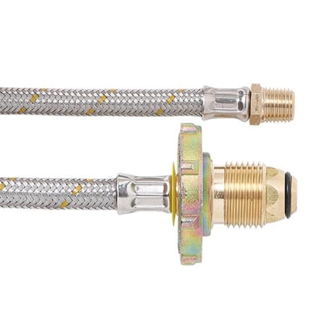 Bromic 6SHW0450 450mm Stainless Steel Gas Flexi Hose POL w Handwheel x 1/4 Inv Flare – Suits Twin Cylinders. 6mm Stainless Steel Pigtail 7/16-24 I/Flare x POL Hand Wheel (450mm). Bromic flexible stainless steel Class F pigtail assemblies are manufactured in accordance with AS1869 and approved by the Australian Gas Association for use with gas. 7/16-24 Inverted Flare x POL Hand Wheel connection, 450mm length. |
