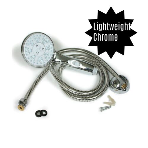 Camco 43713 Chrome Shower Head Kit. Enjoy longer showers with the ergonomically designed, handheld shower head. Convenient on/off handle switch allows you to pause the flow of water while shampooing.