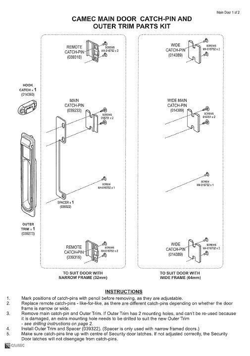 This centre catch can be used in both LH and RH hinged Camec entry doors in the top, middle or lower positions.