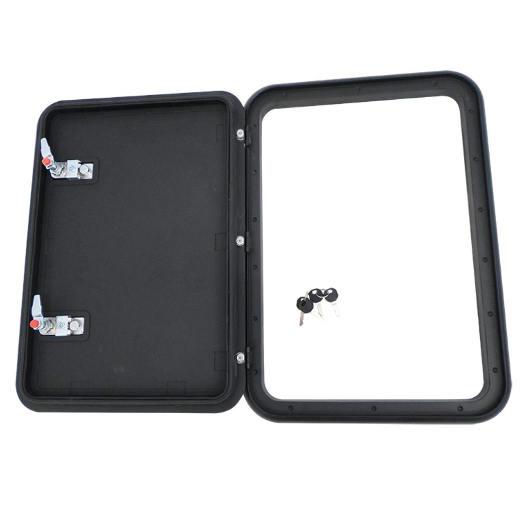 Coast Door 3 – Black 415 x 581 with Chrome Locks. Utilise the cavities in your RV body to create much needed storage space and use the Coast Doors to access them. Available in eight handy sizes, the Coast Doors are available in white with a smooth and modern finish. Installation has been streamlined – screw holes are pre-drilled and they are supplied as a complete door, meaning there is no need to infill. It features an effective door seal and comes with keys to lock and reopen. |