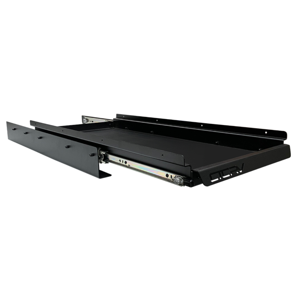 Coast RV 250-07400 Slide Out Tray – 1050mm x 475mm. Australian Made. Experience ultimate convenience with our slide-out tray, designed to effortlessly access stored items and eliminate the hassle of hard-to-reach spaces. Featuring a robust 125KG capacity, it accommodates substantial loads, catering to various storage needs with ease. Crafted from premium aluminium and coated in durable Interpon Textura Black, this tray guarantees unmatched durability and longevity. |