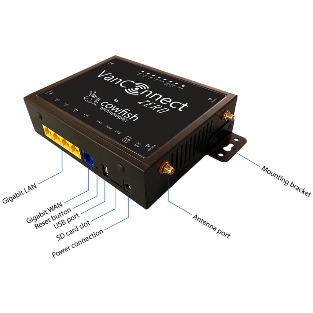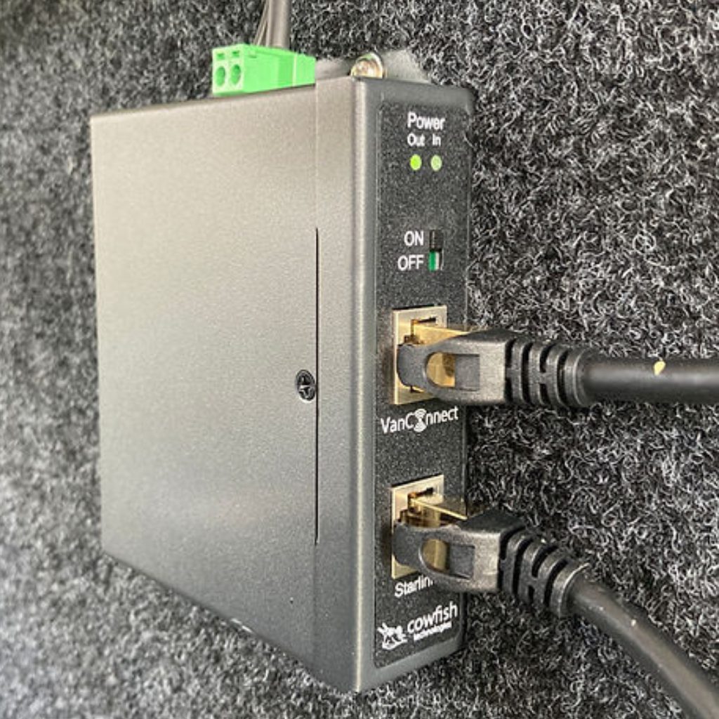 Cowfish Starlink Gen 2 12v Through Wall Setup includes; Cowfish Technologies SIK-01B6-NIL Starlink Integration Kit B – Adaptor. The perfect solution for powering your Starlink Dishy whilst on the road. Designed specifically for use in Caravans, Motorhomes and RVs, the Cowfish Starlink Integration Kit allows you to operate your Starlink Dish from your 12V battery system, ensuring reliable and consistent connectivity even in the most remote locations. This removes the requirement to run an inverter to power the Starlink System and therefor eliminates the losses incurred by the use of an inverter. The Integration Kit links the Starlink Dish to the VanConnect system, giving you all the benefits of the VanConnect over the original Starlink router. A complete 12 volt system with a further reaching WiFi network, optional 4G/5G internet fallback and an integrated media centre. Cowfish Technologies VCZ-01 VanConnect Zero. Cowfish Technologies have specifically designed the Zero software to incorporate the latest in Wireless security and give you the ability to have the router and the wireless networks password protected. |