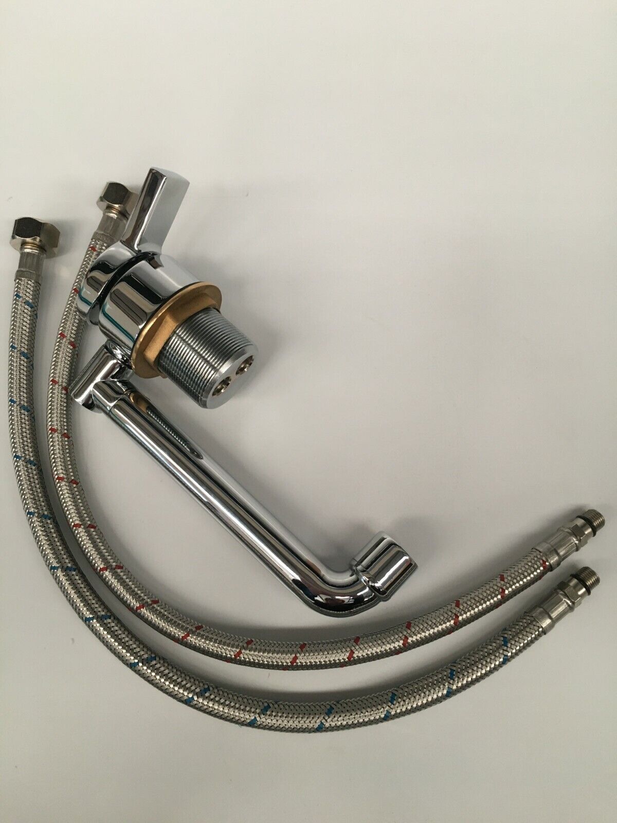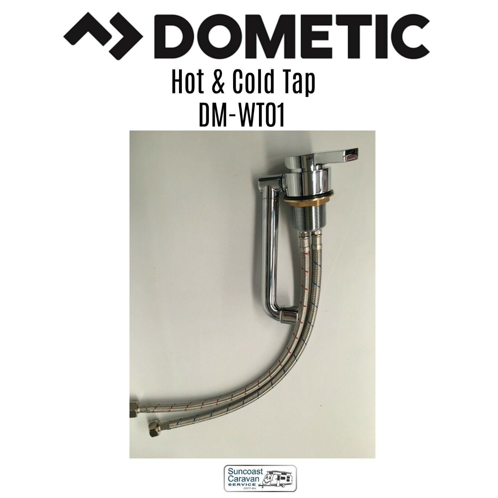 Dometic DM-WT01 Fold Down Hot & Cold Mixer Water Tap. The Dometic Fold Down Tap with Hot and Cold Mixer is a low profile tap that suits Dometic sinks with fold down lids. |