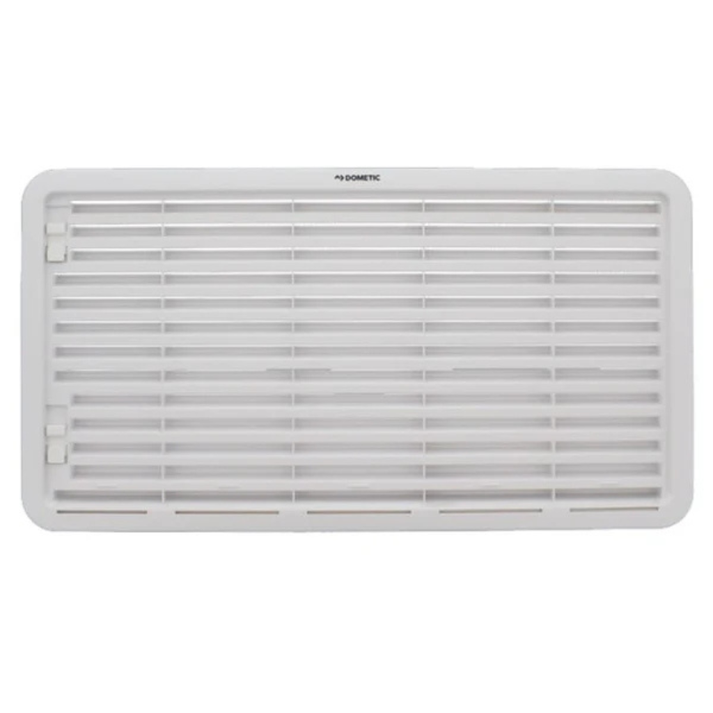 Dometic LS300 White Large Fridge Vent. A specially designed ventilation grill to release heat building up around your fridge. Mounted to outside wall of the vehicle. |