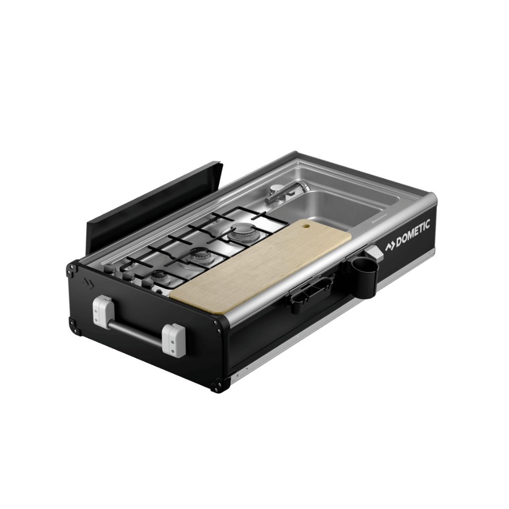 The Dometic SKS101 Small Slide Out Kitchen serves as a 3 burner cooktop, sink and benchtop. It also has handy built in dual side storage to keep your dining and cooking equipment organised and secure. With it’s compact yet high quality design, this slide out kitchen saves valuable space in the kitchen area of your RV. The telescopic runners making it quick and easy to pull-out and stow away after use. It gives you all the kitchen essentials: a sink, double side access storage, three burner cooktop and chopping board. Different additional features can be added such as a bottle opener, cup and utensil holders. The kitchen’s modular aluminium design makes it lighter whilst still being a long lasting item. Easy to fit on to most RVs thanks to its simple three step installation method and is suited with all popular access doors. The Dometic Small Slide Out Kitchen makes cooking outdoors simple and fun, get the most out of your outdoor adventures! |