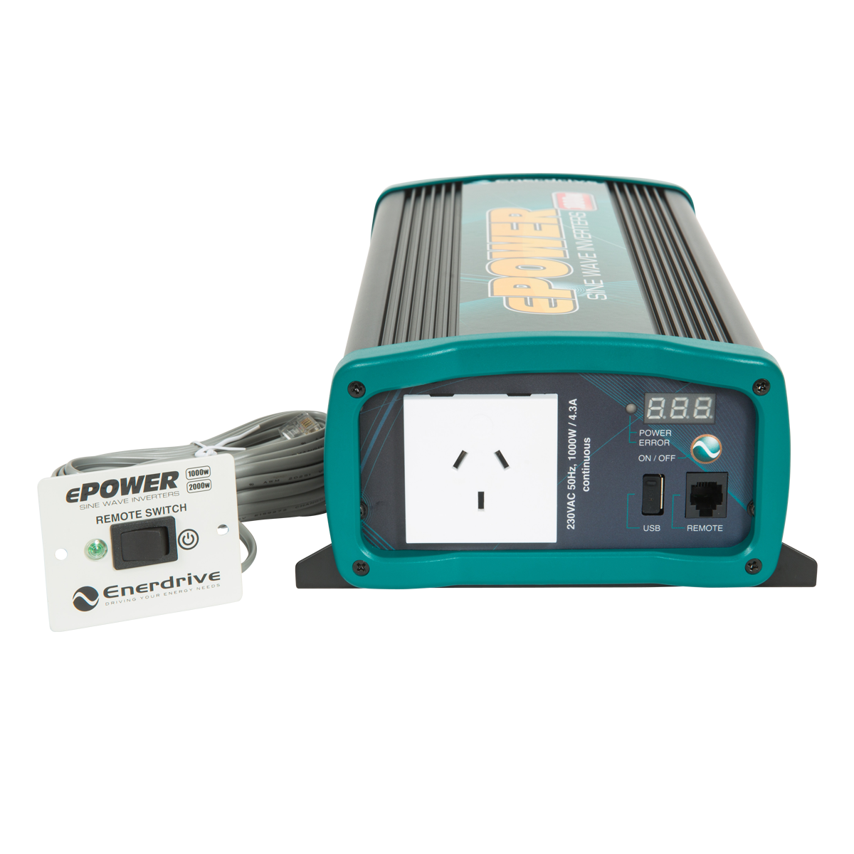 With Enerdrive EN1110S ePower 1000W/12V PSW Inverter ‘s state of the art, easy to use design, this 1000W inverter will offer you reliable service for providing AC power and 5V USB power for your home, boat, caravan, 4WD or commercial vehicle. The Enerdrive ePOWER 1000W Inverter can run many AC powered appliances when you need AC power anywhere. The 5V USB power can charge many USB powered devices. |