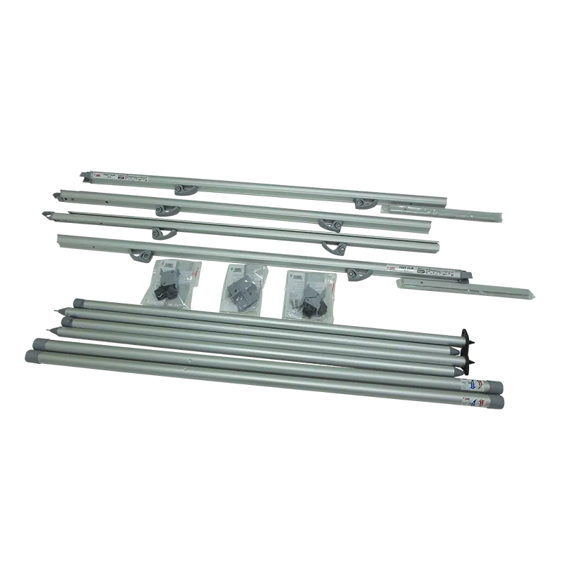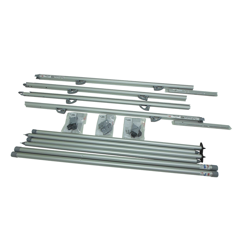 The Fast Clip is delivered with two vertical poles that are fixed between the side panels and the vehicle wall.