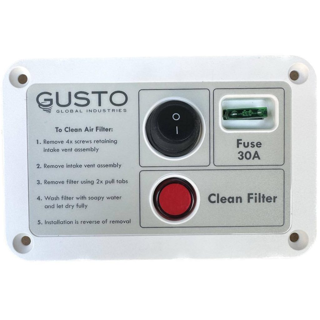 GUSTO 650-01220 DRS Complete Unit – White. Introducing Gusto DRS: The Ultimate Solution for Dust-Free Adventures. Safeguard your RV’s interior and valuables from the relentless intrusion of dust. This innovative device eliminates the ingress of dust, protecting your vehicle’s interior and allowing you to focus on creating cherished memories on your road trips. Product Description Gusto’s active dust reduction system ensures a dust-free environment in your caravan, RV, or motorhome at all times, even while stationary or moving slowly. Experience the freedom of clean air and dust-free surroundings wherever you go. With its sleek and compact design, Gusto DRS seamlessly integrates into almost any RV, enhancing both aesthetics and user experience without compromising functionality. Experience dust-free adventures and bring home memories, not dust, on your next road trip with Gusto DRS. Don’t let dust invade your RV—choose the ultimate DRS solution for a cleaner, more enjoyable adventure. |