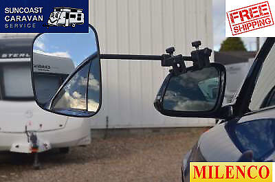 Milenco MIL2912 Grand Aero 4 Convex Towing Mirrors (Pair). These Milenco Grand Aero 4 towing mirrors have been engineered to be balanced and vibration-free and have been extensively tested at speeds up to 255 kph. On top of this, these towing mirrors comply with the latest international regulations and pedestrian safety laws. They feature a convex chrome safety glass that has an extremely long life and the screws and fittings are made of stainless steel and brass that will never corrode. The mirror is convex so it provides the same field of view as 95% of car mirror doors. The Milenco Grand Aero 4 Towing Mirrors fit all current (post 1995-2020) vehicles (some exceptions listed below) with anew and versatile clamping system that conforms to the shape of just about any rear view mirror. This unique clamp system eliminated the need for straps which can often transfer vibration.