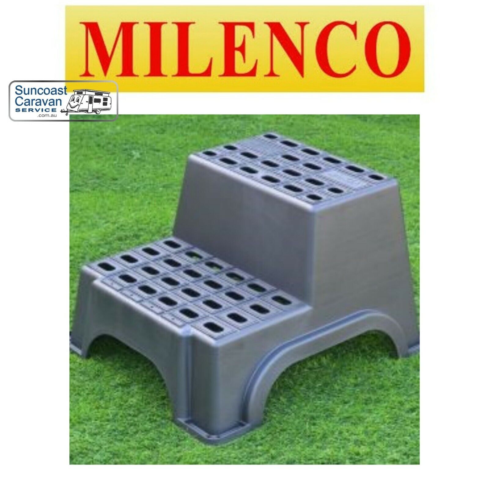 Milenco MIL3797 Plastic Double Step. Made in Australia, the Milenco MGI double step is a safe and durable plastic step that is perfect for assisting with getting into RVs. The fact that the Milenco MGI double step is produced with 100% recycled material makes it the right environmentally friendly choice when searching for a step product. Features a Giant Tread Area that strictly meets Safety Guidelines to allow a SAFE Carry Load of 200KG, Skid Resistance and a Tread that is non-slip even when wet. The base of the step is designed to be larger to ensure the step cannot overturn whilst in use. Additionally, the base is fitted with impact absorbing rubber feet to prevent skidding on most surfaces and peg holes for use on the grass Getting into your vehicle has never been easier with the Milenco MGI Giant Double step it is lightweight, easy to pick up and store. |
