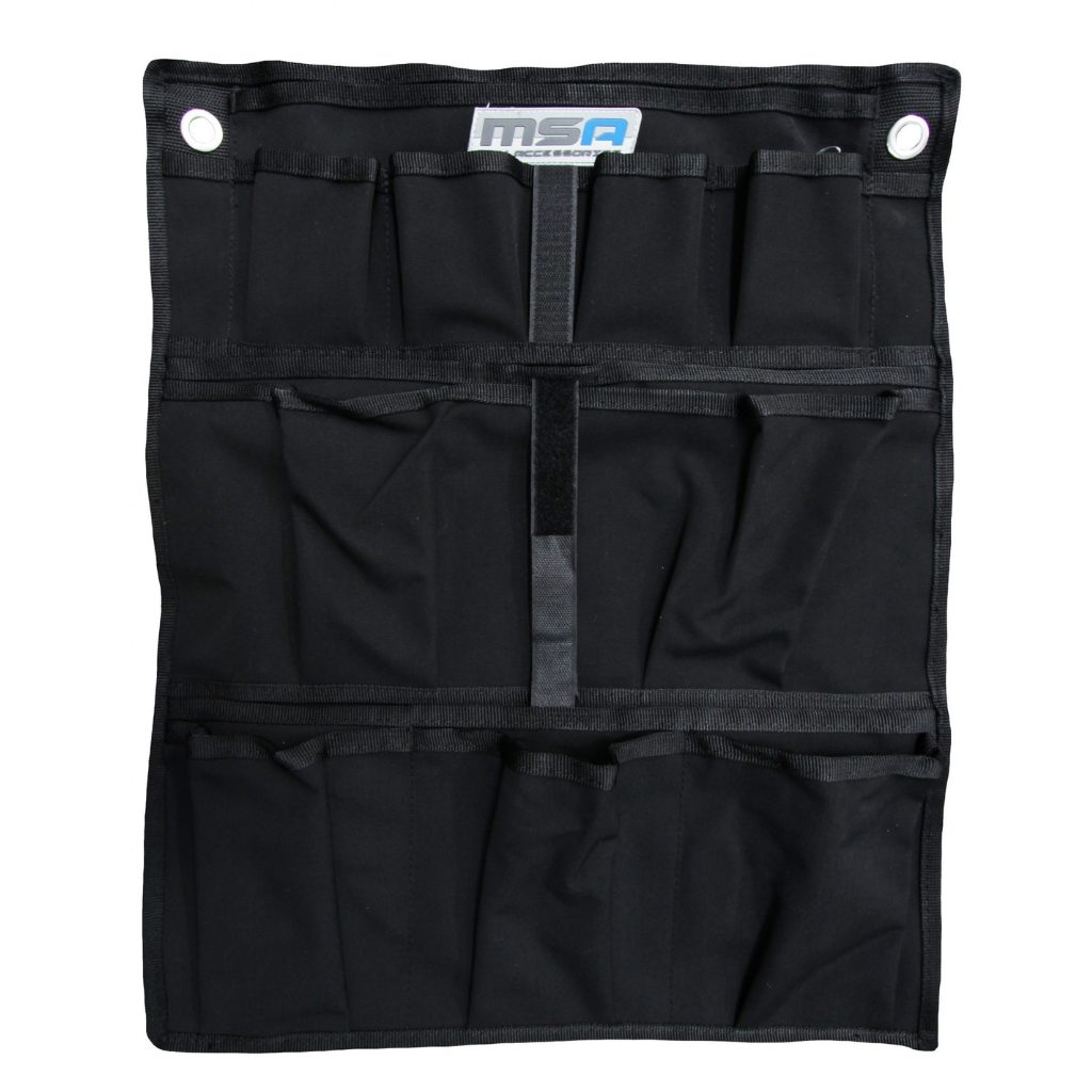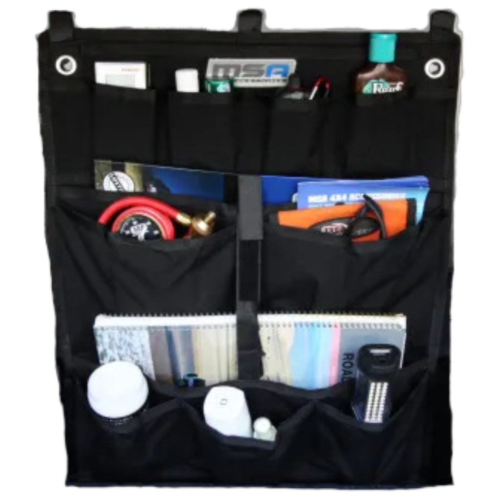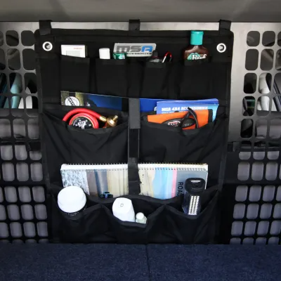MSA ORGC Large Barrier Organiser. The MSA Large Barrier Organiser is a great storage solution to keep your 4WD Gear well organised. No more rummaging around to find things that have moved during travel. This organiser has 14 pockets of various sizes, allowing you to store larger and smaller items together. The Large Barrier Organiser features multiple Velcro strips on the rear which secure it to your MSA 4×4 Cargo Barrier. As well as two stainless steel eyelets for heavy-duty securing when loaded with heavier items. An extra Velcro strip on the front of the organiser helps to fasten larger objects into place and preventing sagging. Excellent for keeping items such as pens, tools, torches, radios, books, sunscreen, insect repellent and much more! |