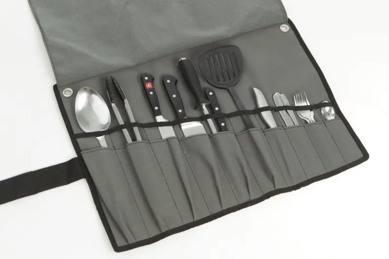 MSA UR Tool and Cutlery Roll. The MSA Tool and Cutlery Roll has 10 pockets of various sizes for you to keep your tools or cutlery neat and organised. No more need for clunky loud toolboxes or tubs that clatter around and distract you while you drive. The combination of elastics and heavy-duty double-layered 12oz canvas will keep your gear safe and securely in place. Preventing any scratches or damage. The attached Velcro strap allows the roll to be wrapped up neatly into a compact size. This makes it easy for you to transport and store cutlery or tools without taking up unnecessary space. |