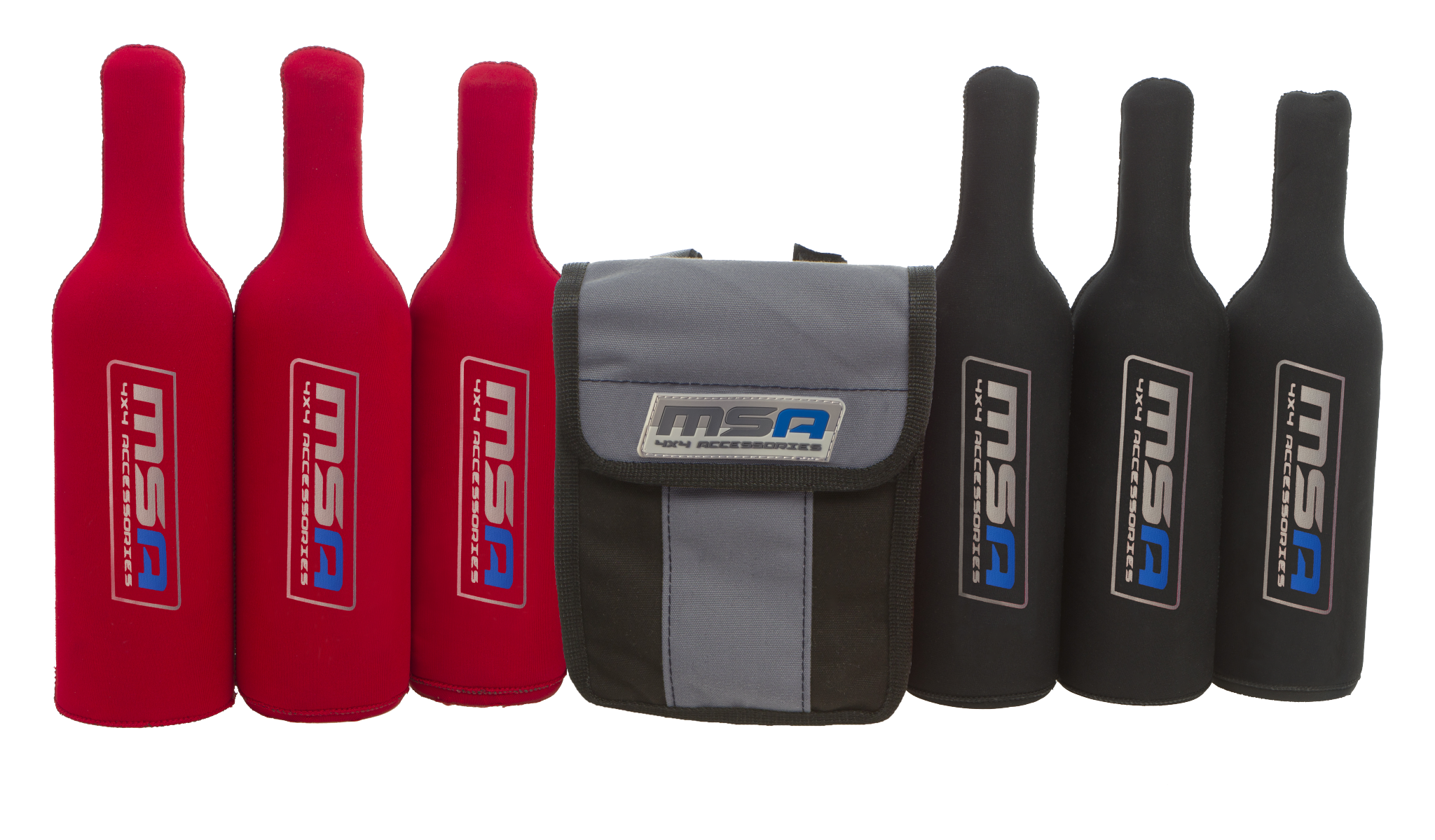 MSA WTS Wine Bottle Tubes with Canvas Storage Bag. The MSA Wine Bottle Tubes are an incredibly useful product, designed to protect your bottles from damage while travelling. Made with 2mm neoprene, the tubes fit snugly over your wine bottles. Preventing them from cracking or breaking over any bumpy roads. The neoprene material is thick enough to offer excellent protection and thin enough that it won’t reduce storage space. These tubes come in two different colours (red and black) to distinguish between different drinks. They are also supplied with a neat canvas storage bag to store the tubes when not in use. |