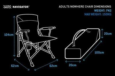 The Navigator NAV-011 Nowhere Chair Adult Size is a super comfy camping chair with a padded seat and backrest. Camping chairs are an essential accessory when out adventuring. Finding a good one that doesn’t rip or break after the first one or two trips can sometimes be a bit of a hassle. Made from high quality and durable materials, the Nowhere Chair’s are designed to last. Always have somewhere to sit down, even in the middle of nowhere! |