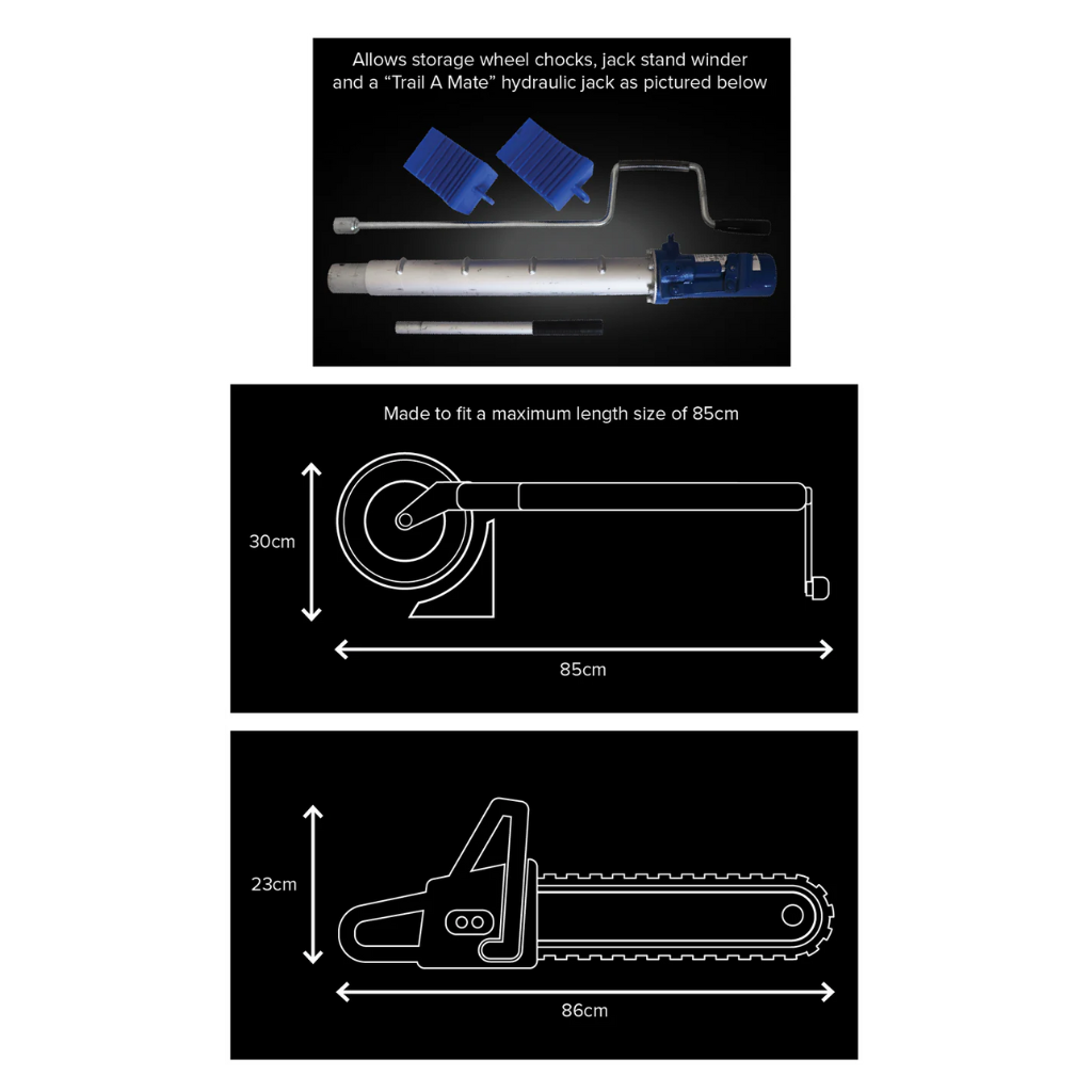 IMPORTANT INFORMATION:Not what you are looking for? Check out our full range of Tools & Storage Solutions here. * Jockey wheel and chocks, jack stand winder or chainsaw not included |