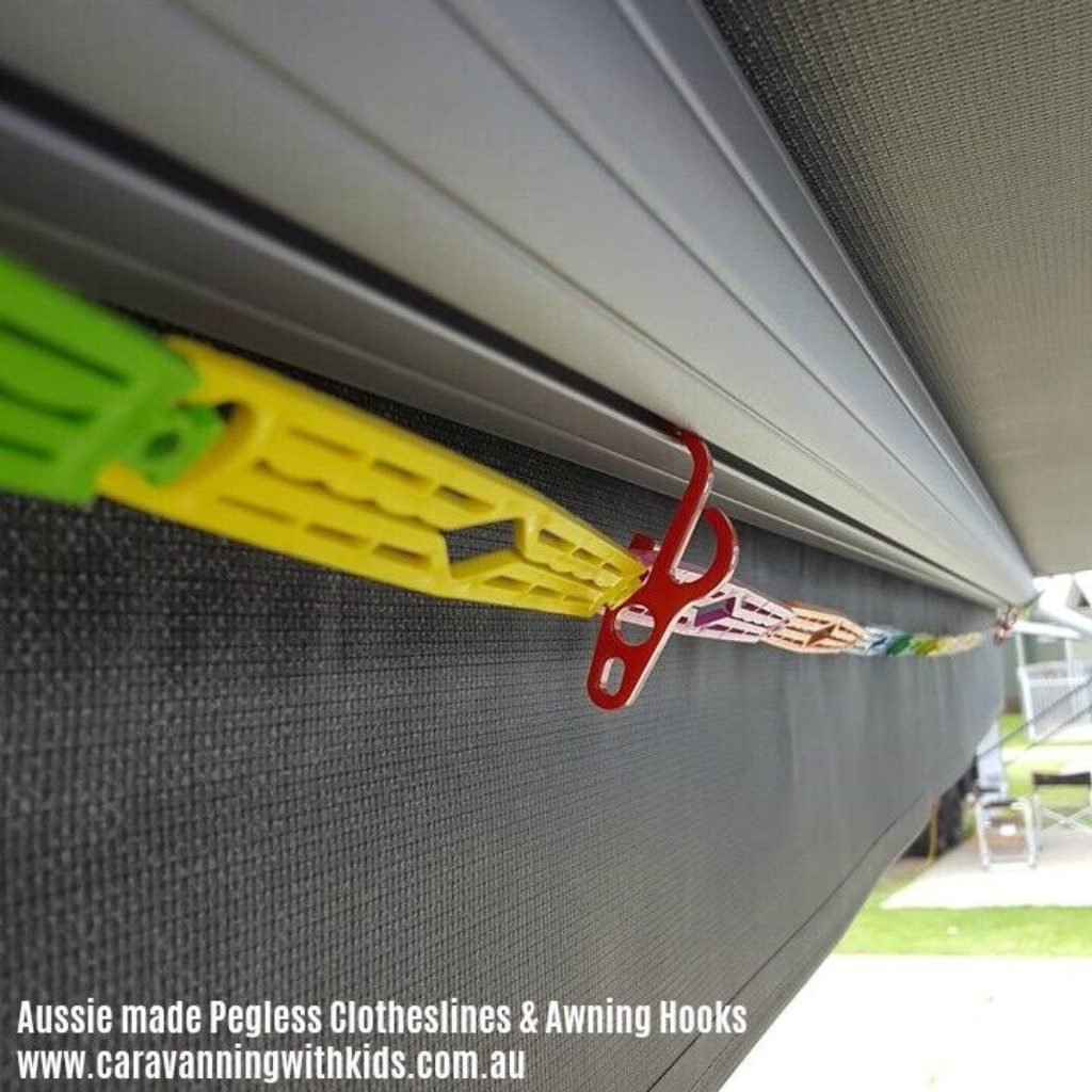 RSG Caravan Awning Hooks (10 Pack). We love this little invention for a couple of reasons. These Awning Hooks are Australian made and super handy and useful! Made by RSG Accessories in Brisbane, these Awning Hooks provide extra hanging space under your awning. The hooks slide easily into the sail track groove of most caravan/RV barrel awnings. Please note: These hooks are NOT suitable for Fiamma, Thule or most car mounted awnings. |