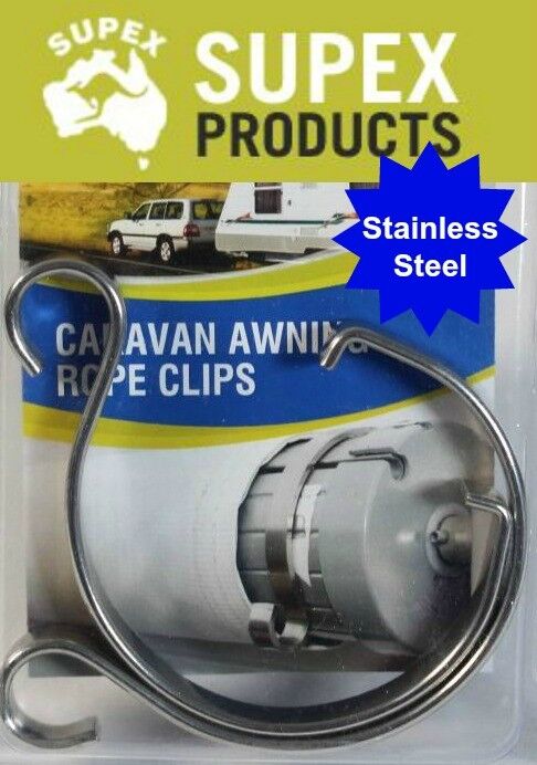 Supex ARC Stainless Steel Caravan Rollout Awning Rope Clips (Pair). Stainless steel awning rope clip to suit most awnings. Sold as a pair.