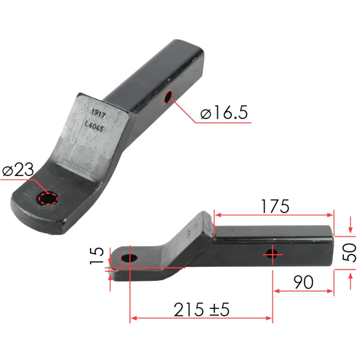 208mm Long (Hitch Pin Hole to Tow Ball Hole)