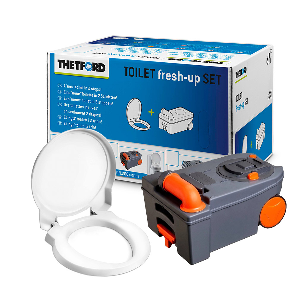 Thetford 9339362 Fresh Up Set For C250/260 Plastic Bowl Cassette Toilet. The Toilet fresh-up Set is an easy and economic way to make a used Cassette Toilet as good as new. |