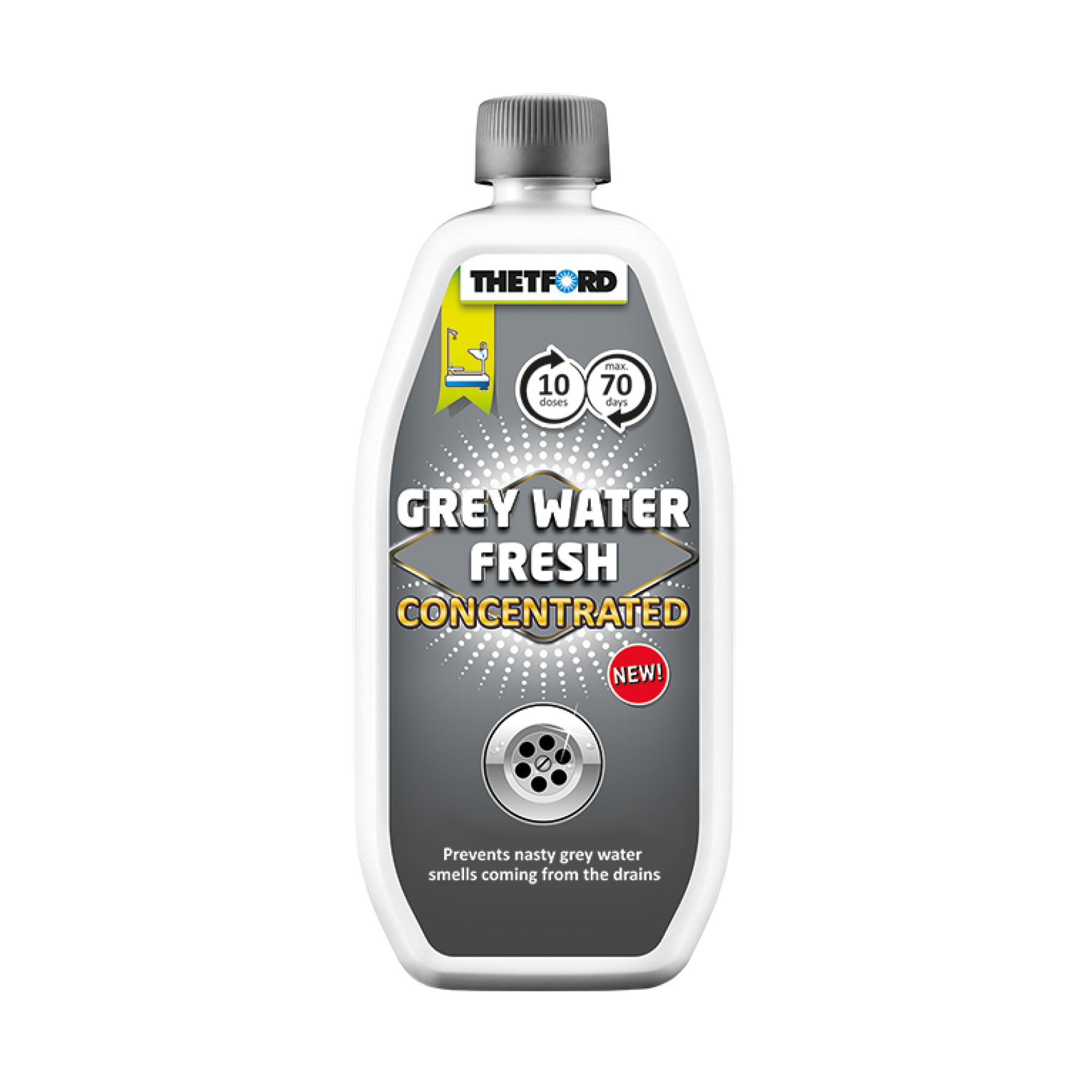 Thetford Grey Water Fresh Concentrated 800ml. Thetford’s new Grey Water Fresh Concentrated is a powerful, highly effective concentrated toilet fluid for the grey water tank in portable toilets and cassette. |