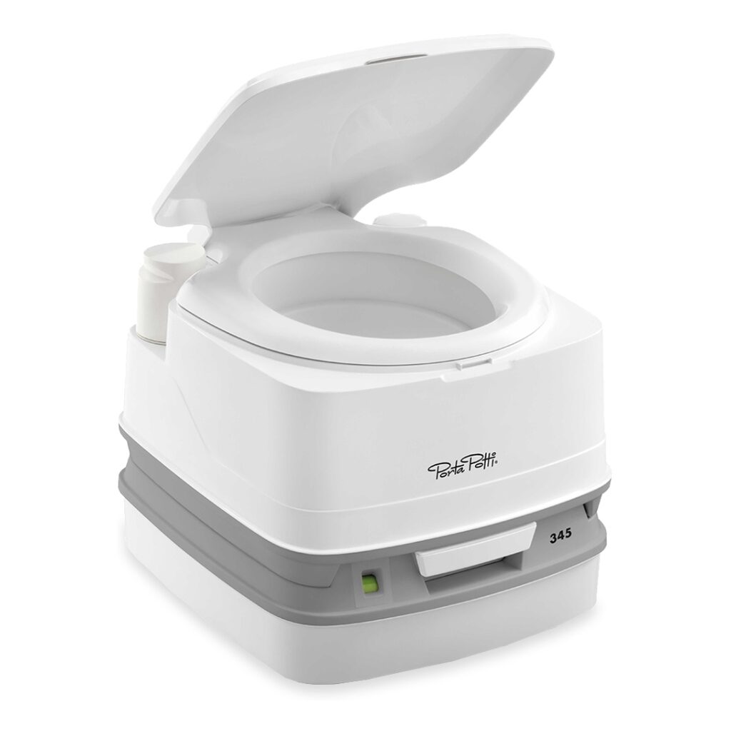 Thetford Qube 345 Porta Potti Toilet. Made from a light but tough plastic, these Porta Potties are hermetically sealed (meaning that the seals are completely airtight, ensuring no unpleasant smells can escape!) cleaning is also made easy thanks to detachable toilet seats. The Qube range features lid clips (these keep the lid down when not in use). They also feature a vent button for ‘no splash’ emptying and a holding tank indicator to tell when it’s time for emptying. |