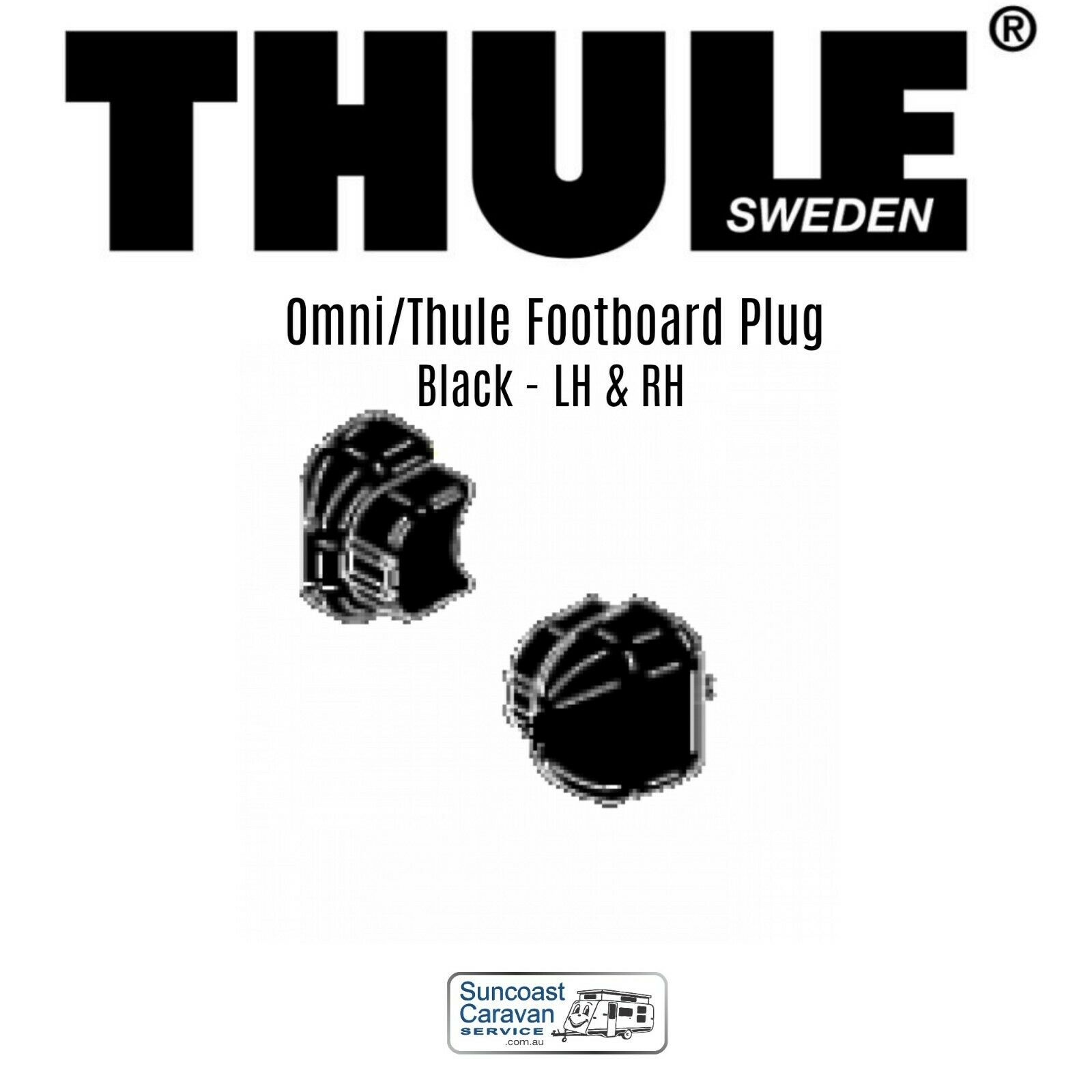 Thule Steps LH and RH Plug Footboard ATRV Black. Replacement end caps for the Thule steps. Suitable for drop down and slide-out aluminium steps. Pack of 2