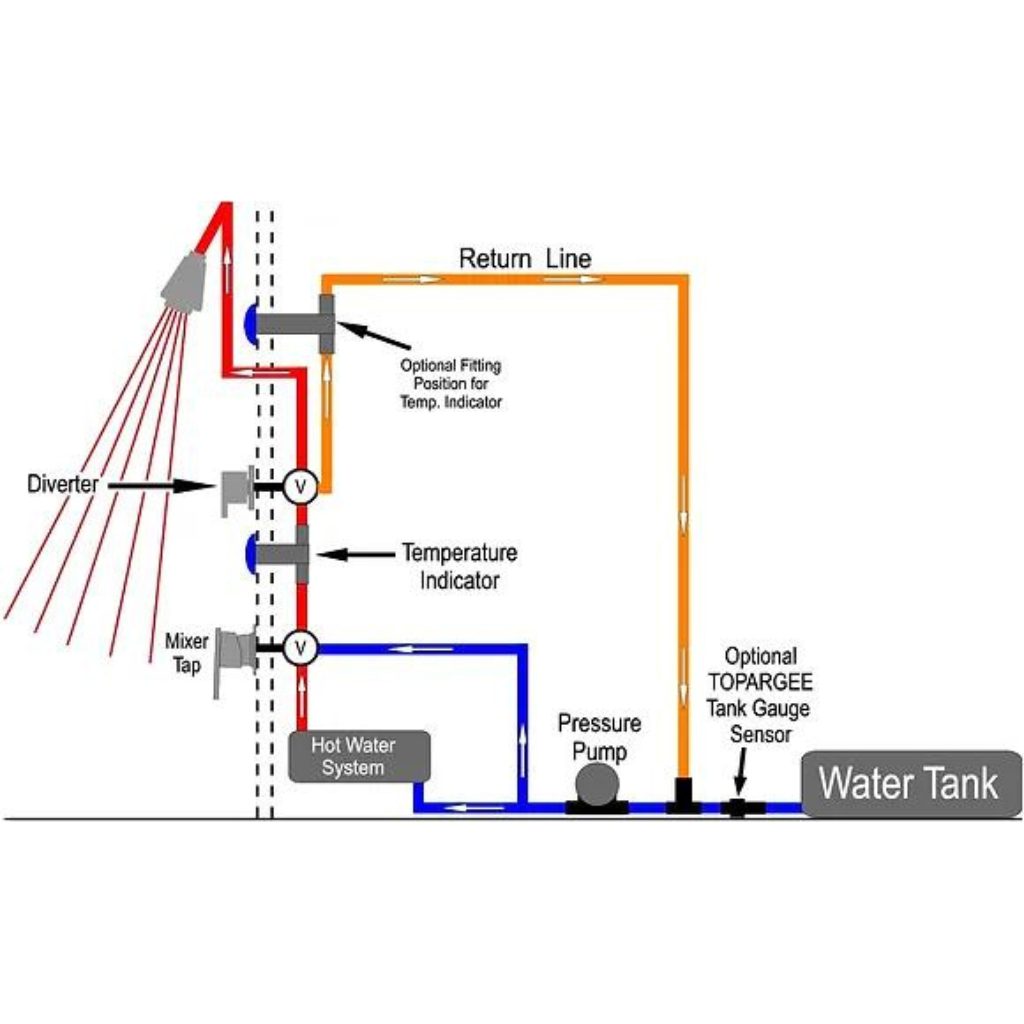 • Redirects fresh clean water back into your tank instead of down the drain whilst heating